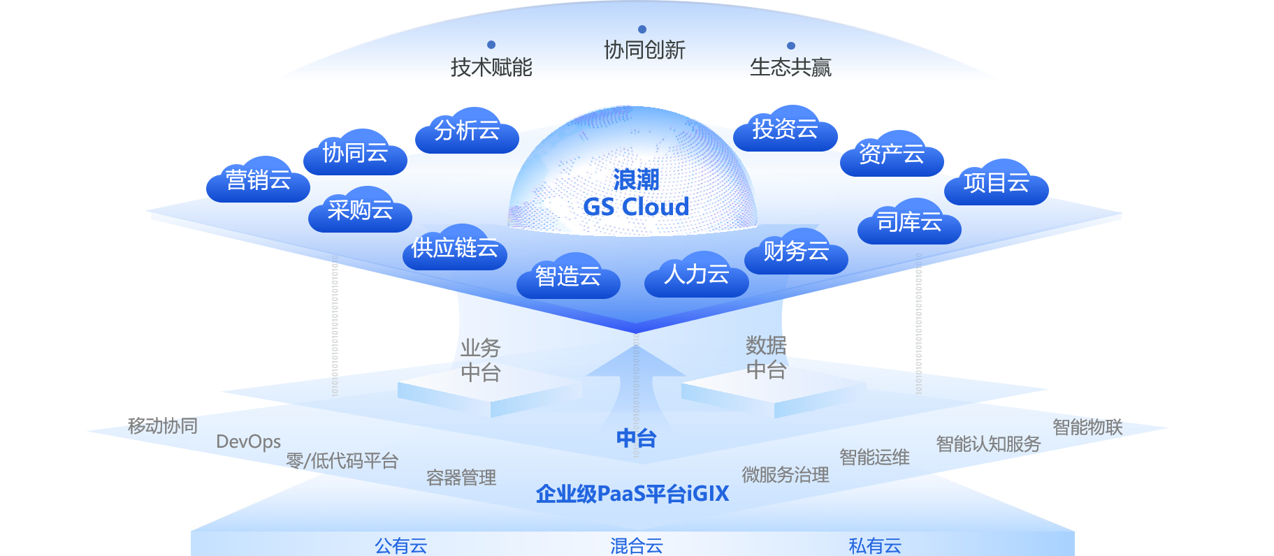 给予端到端数字化流程,实现全要素链、全价值链、全产业链连接,为员工、客户、供应商给予全新体验,构建企业协同生态体系,支撑企业业务创新和商业模式变革。