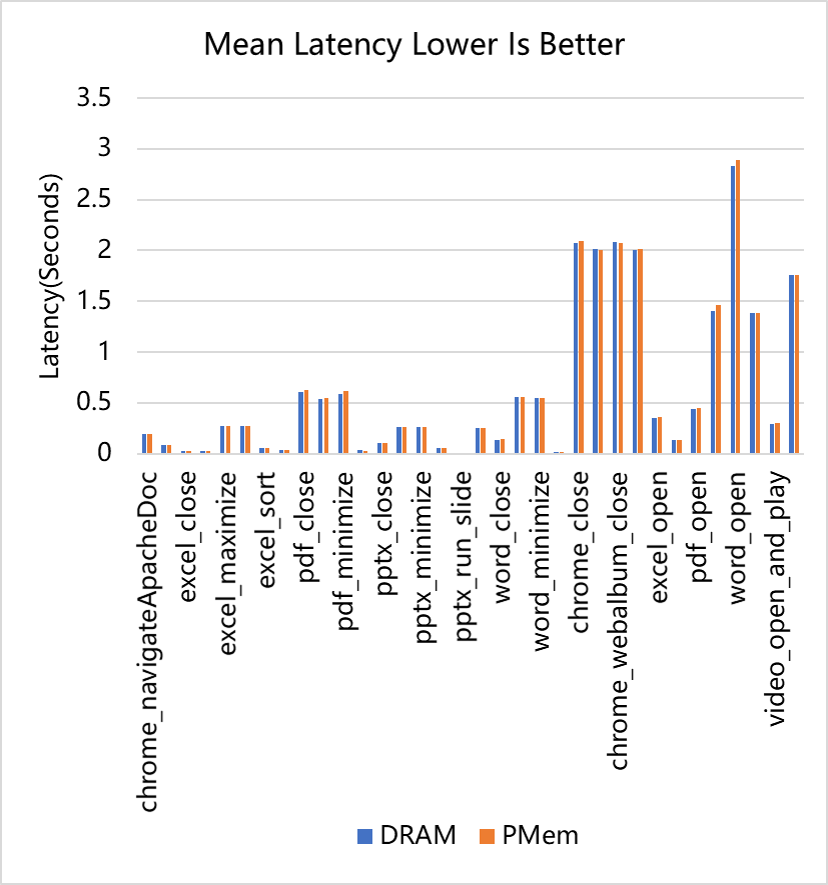 本次使用Viewplanner工具测试了Horizon标准用例下的性能,来验证英特尔® 傲腾™ 数据中心级持久内存应用于VMware VDI的可行性,以应用、cpu、磁盘延迟时间长短作为性能评测指标。